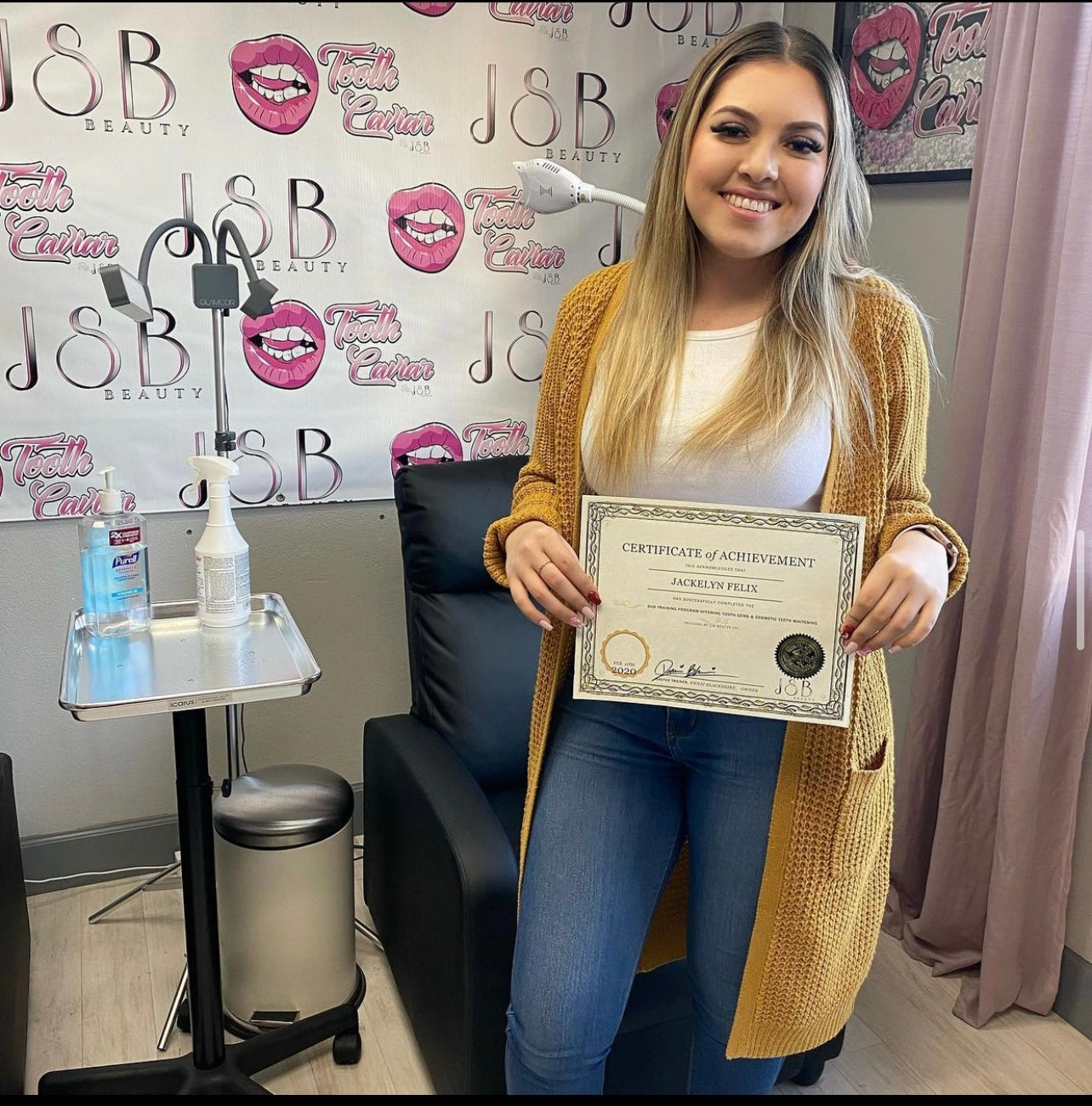These two Boss babes are offering Tooth Caviar and cosmetic teeth whitening Thank you for driving down from oceanside, near San Diego to train with jsb beauty.
